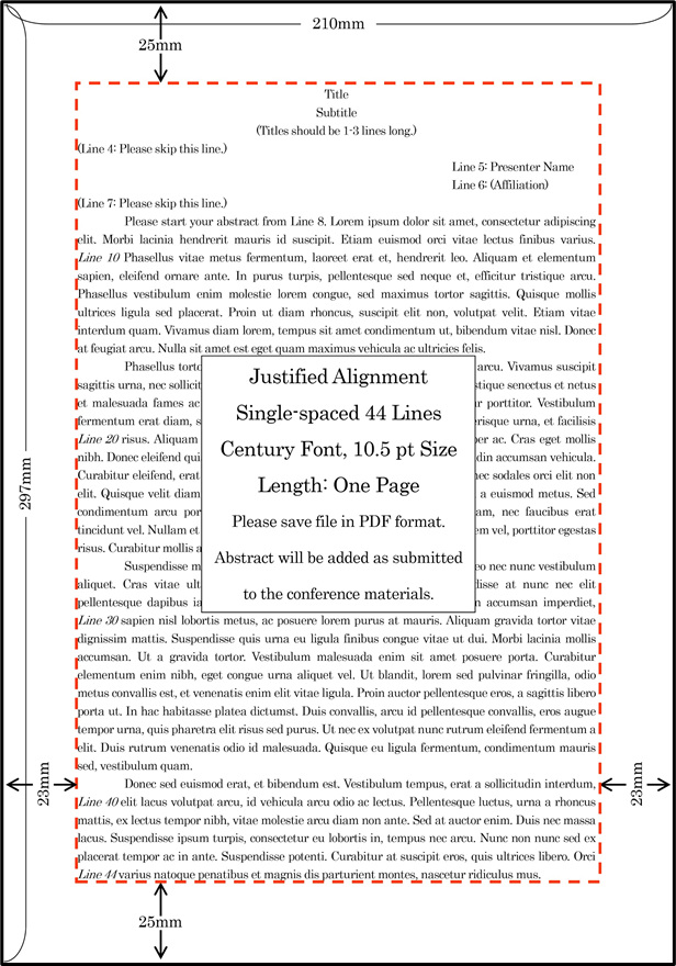 - Abstracts should be on one A4 page, with 44 lines of text. English language abstracts should use Century font, 10.5 point size.